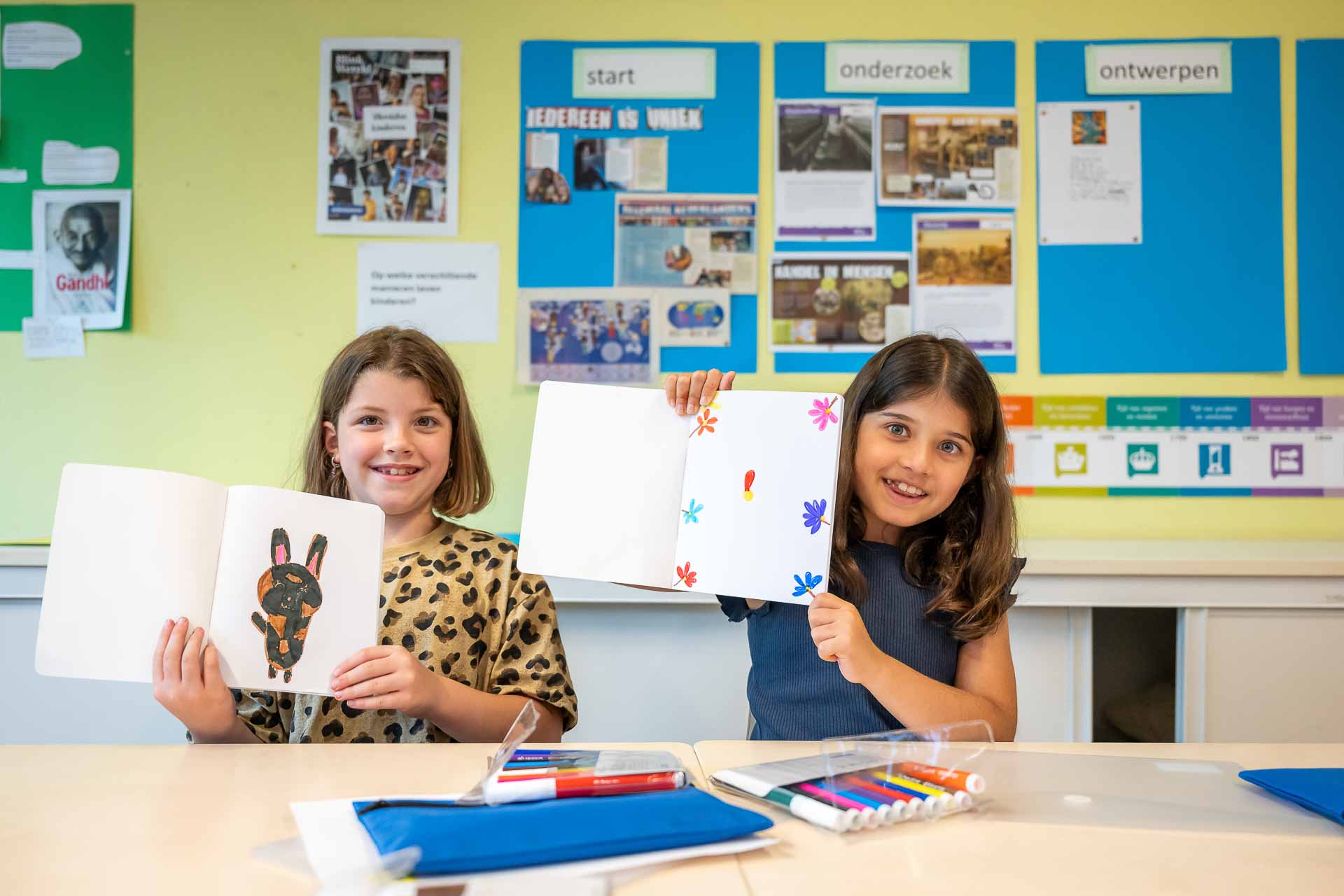 Dat laatste gebeurt bijvoorbeeld bij onderwerpen waar al eerder instructie over is gegeven. Op het bord en/of het takenblad staat per dag wanneer een instructiemoment is.